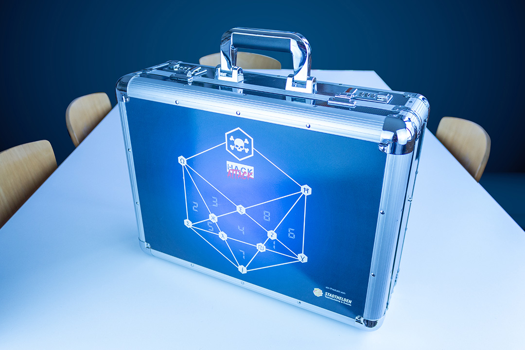 Statt eines stationären Escape Rooms, bietet die Eventagentur Stadthelden einen mobilen Escape Koffer für Firmenevents an. Es war sehr spannend, nicht nur für das Design verantwortlich zu sein, sondern auch die Rätsel mitzuentwickeln.