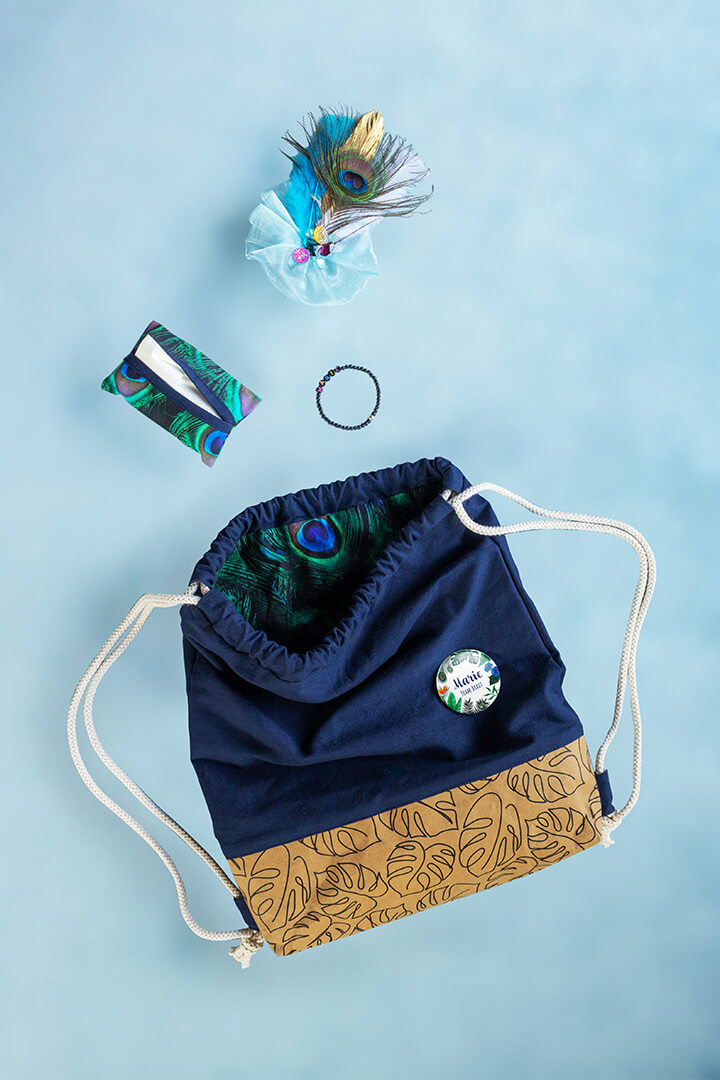 Kein Junggesellinnenabschied ohne entsprechende Accessoires! Der Turnbeutel mit Pin, Armband, Taschentuchtasche und Haarschmuck wurde ebenfalls thematisch passend gestaltet. Nach dem JGA konnte der Pin entfernt und der Turnbeutel weiter verwendet werden.